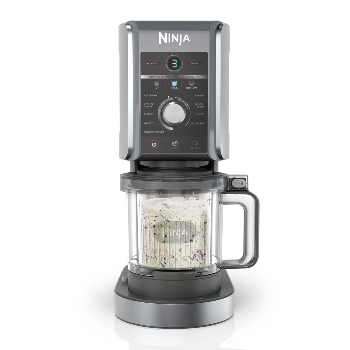 Сердцем устройства является Advanced CREAMify Technology — система с двумя мощными моторами и профессиональной мешалкой Creamerizer Paddle из нержавеющей стали. Она создаёт направленное давление и высокую скорость вращения, тщательно измельчая замороженные ингредиенты и превращая лёд в однородную, гладкую и насыщенную текстуру всего за несколько минут. Благодаря этому десерты получаются максимально кремовыми без необходимости добавления стабилизаторов.