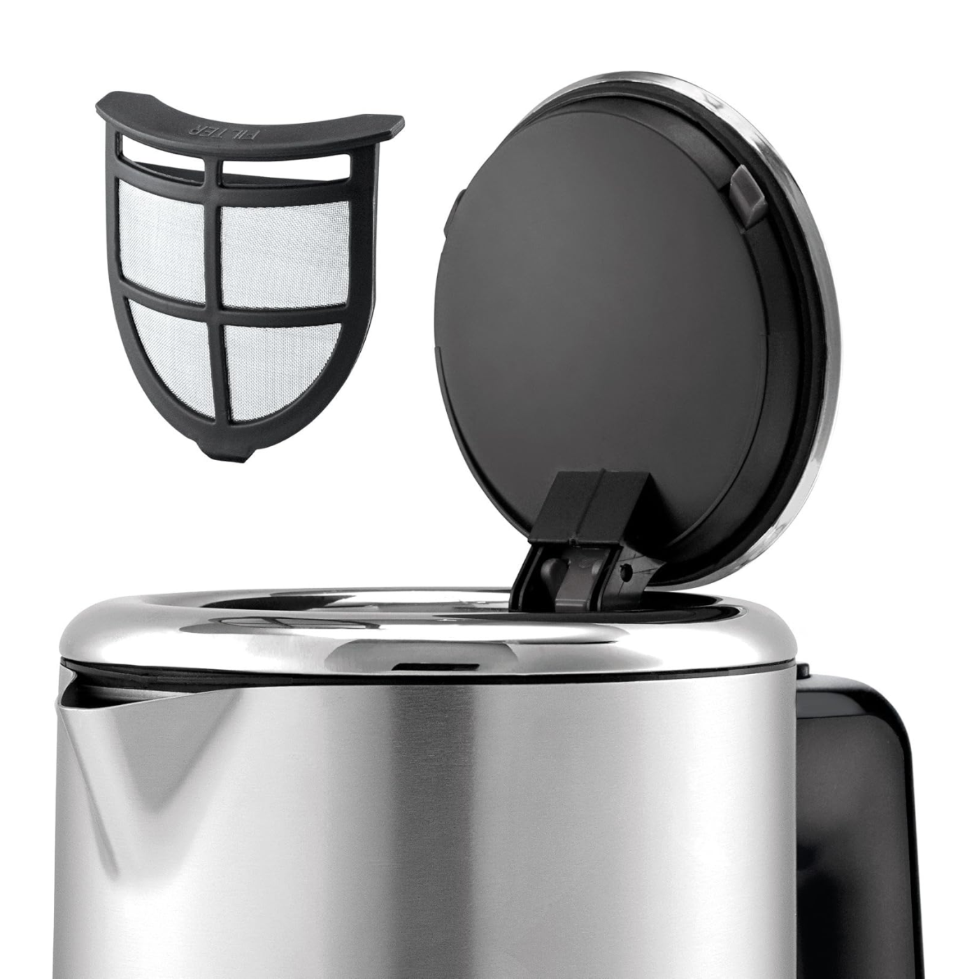 Чайник имеет объём 1,6 литра и мощность 2400 Вт, что обеспечивает быстрое закипание воды. Продуманная конструкция и удобные функции делают использование максимально комфортным и безопасным: