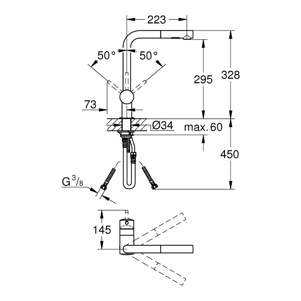 Смеситель для кухни GROHE Minta с вытяжным изливом — функциональное и элегантное решение для удобной работы на кухне.