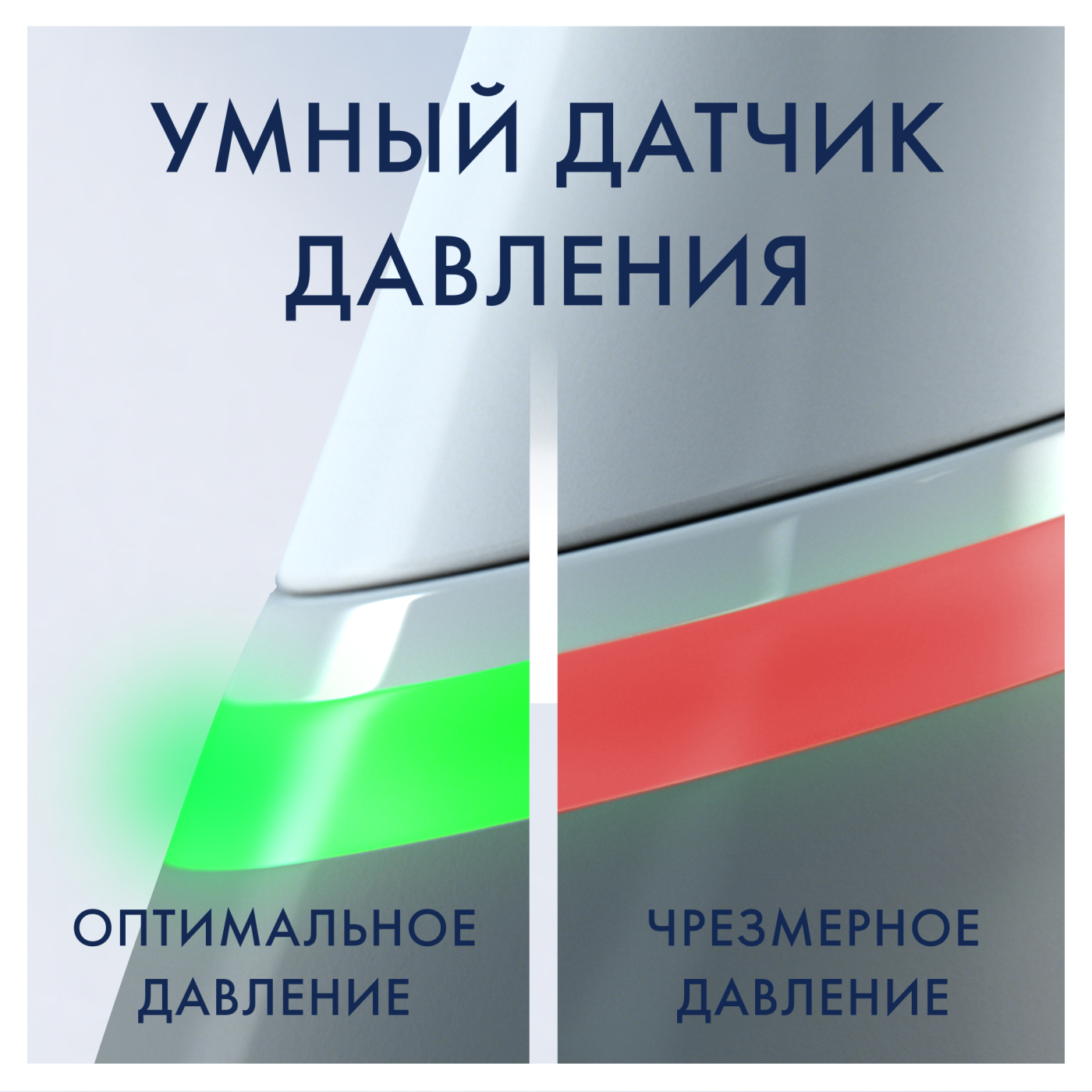 - Умный датчик давления сигнализирует красным световым сигналом о чрезмерном надавливании и зеленым - о правильной чистке.