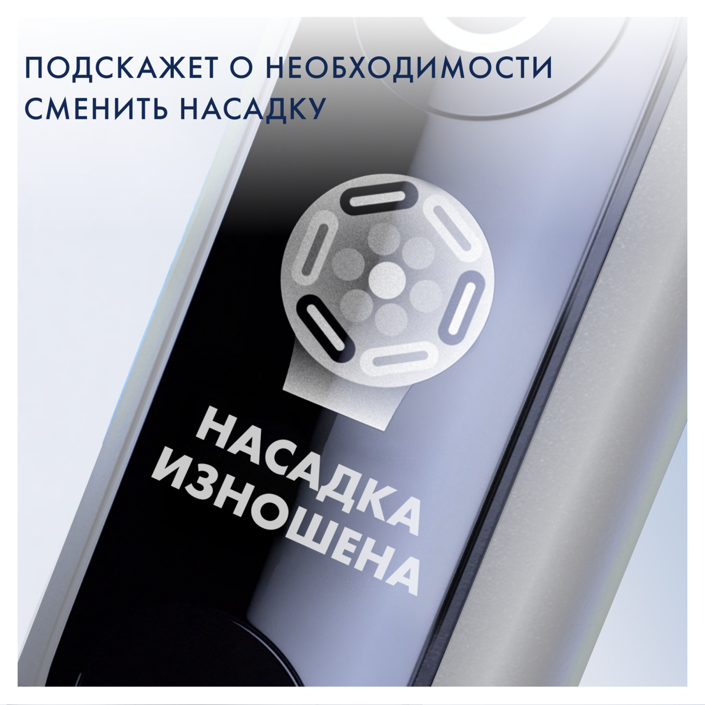 - Голубые щетинки Индикатор обесцвечиваются наполовину, сигнализируя о необходимости замены насадки. Рекомендуется менять насадку раз в 3 месяца для превосходного результата.