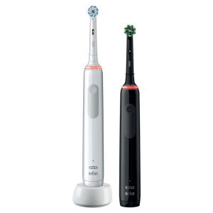 В набор Oral-B Pro 3 3900 Duo входят две зубные щетки Oral-B Pro 3 белого и черного цветов с литий-ионным аккумулятором. Щетки Oral-B рекомендованы всем, кто хочет сменить мануальную зубную щетку на электрическую и улучшить здоровье своих зубов и десен. Щетка помогает чистить зубы в течение 2 минут благодаря профессиональному таймеру, каждые 30 секунд уведомляющему о необходимости сменить зону чистки зубов. Пока вы просто перемещаете зубную щетку во рту, уникальная круглая насадка Oral-B делает все остальное. Она удаляет до 100% больше зубного налета, чем обычная мануальная зубная щетка, делая десны более здоровыми, а вашу улыбку - белоснежной.