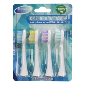 Стандартные насадки средней жесткости для ультразвуковых зубных щеток Donfeel HSD-015/016/017/018. Каждая щетинка тщательно отшлифована, поэтому не ранит десны и подходит для массажа. Щетинки диаметром 0,06 мм.