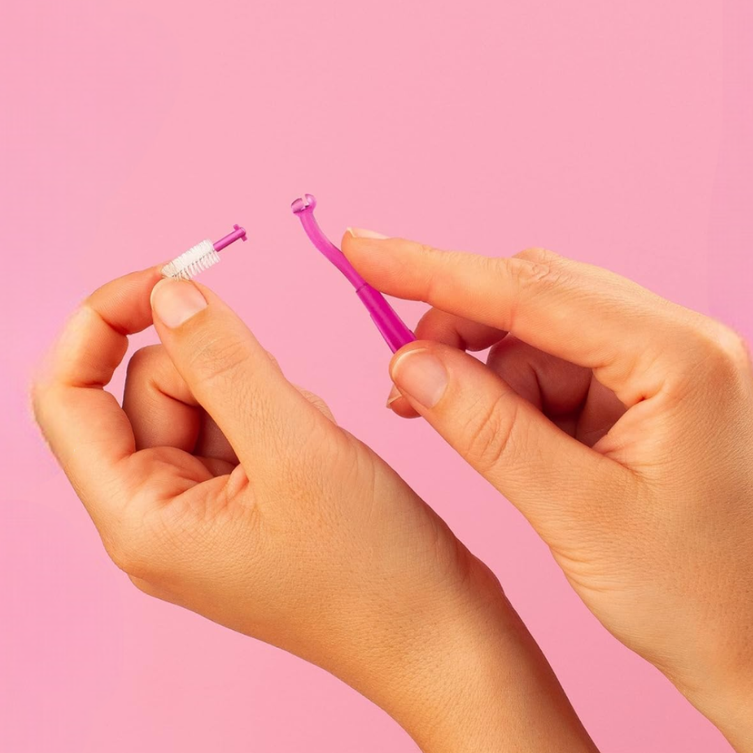 Гибкий стержень из прочного хирургического сплава с силиконовым покрытием позволяет безопасно чистить труднодоступные зоны и продлевает срок службы ершика. Держатель удобно лежит в руке, не скользит и надежно фиксирует ершик простым щелчком.