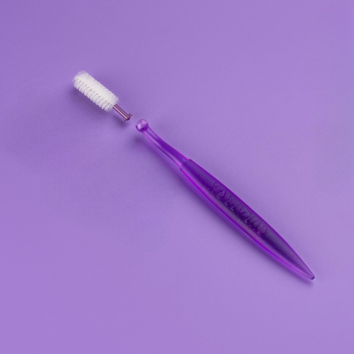 Гибкий стержень из прочного хирургического сплава с силиконовым покрытием позволяет безопасно чистить труднодоступные зоны и продлевает срок службы ершика. Держатель удобно лежит в руке, не скользит и надежно фиксирует ершик простым щелчком.