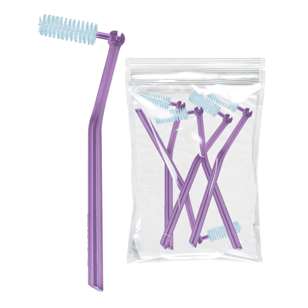 Гибкий стержень из прочного хирургического сплава с силиконовым покрытием позволяет безопасно чистить труднодоступные зоны и продлевает срок службы ершика. Держатель удобно лежит в руке, не скользит и надежно фиксирует ершик простым щелчком.