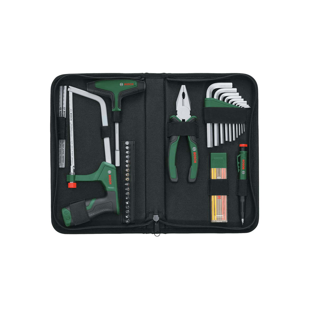 - 1× ножовка 150 мм — для мелких распилов (арт. 1 600 A02 7A7)