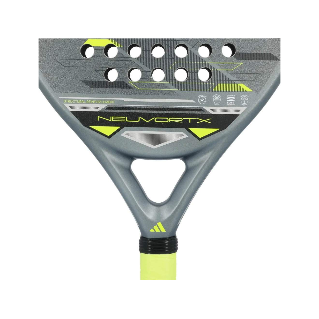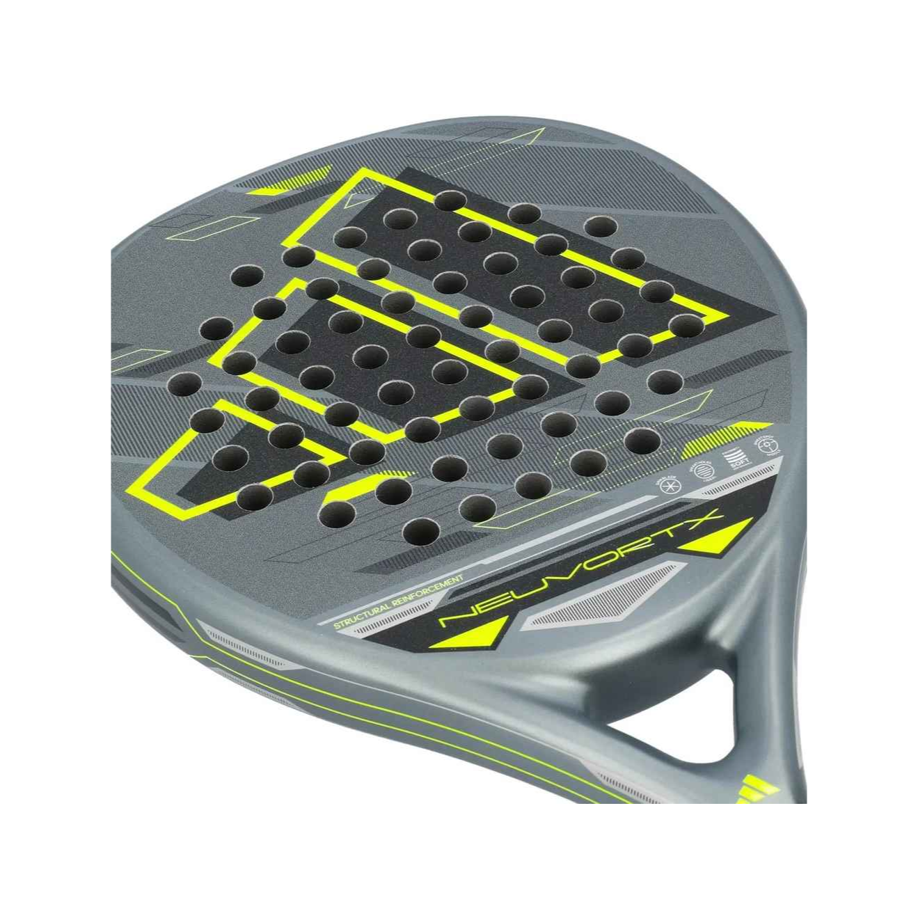 Ракетка для падел-тенниса Adidas Neuvortx Black/Lima — это универсальная модель для игроков среднего и продвинутого уровня, которая сочетает высокий контроль, комфорт и возможность уверенной атакующей игры. Круглая форма головы и центрированный sweet spot обеспечивают точные и предсказуемые удары, позволяя уверенно контролировать мяч в каждом розыгрыше.