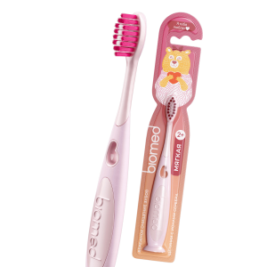 —Детская зубная щетка BIOMED (2+), мягкая, розовая