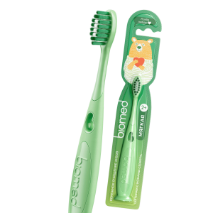 —Детская зубная щетка BIOMED (2+), мягкая, зеленая