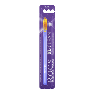 R.O.C.S. XL-Clean - зубная щетка средней жесткости с увеличенной головкой для эффективного ежедневного ухода за зубами и деснами. Щетка изготовлена с использованием текстурированной щетины с закругленными безопасными кончиками. Обеспечивают быстрое и качественное очищение, не повреждают эмаль, реставрации из пломбировочных материалов. Высокое качество очистки и легкий доступ к труднодоступным участкам полости рта, межзубным промежуткам, небной и язычной поверхностям зубов.