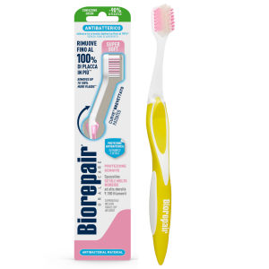 Зубная щетка Biorepair Protezione Gengive обеспечивает бережный и эффективный уход за полостью рта благодаря уникальной изогнутой головке и эргономичной ручке, которые позволяют очищать даже самые труднодоступные места в полости рта.