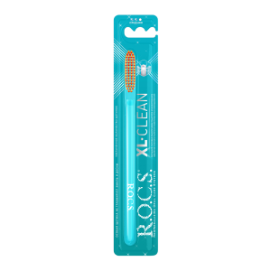 R.O.C.S. XL-Clean - зубная щетка средней жесткости с увеличенной головкой для эффективного ежедневного ухода за зубами и деснами. Щетка изготовлена с использованием текстурированной щетины с закругленными безопасными кончиками. Обеспечивают быстрое и качественное очищение, не повреждают эмаль, реставрации из пломбировочных материалов. Высокое качество очистки и легкий доступ к труднодоступным участкам полости рта, межзубным промежуткам, небной и язычной поверхностям зубов.