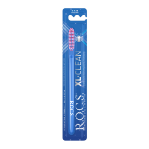R.O.C.S. XL-Clean - зубная щетка средней жесткости с увеличенной головкой для эффективного ежедневного ухода за зубами и деснами. Щетка изготовлена с использованием текстурированной щетины с закругленными безопасными кончиками. Обеспечивают быстрое и качественное очищение, не повреждают эмаль, реставрации из пломбировочных материалов. Высокое качество очистки и легкий доступ к труднодоступным участкам полости рта, межзубным промежуткам, небной и язычной поверхностям зубов.