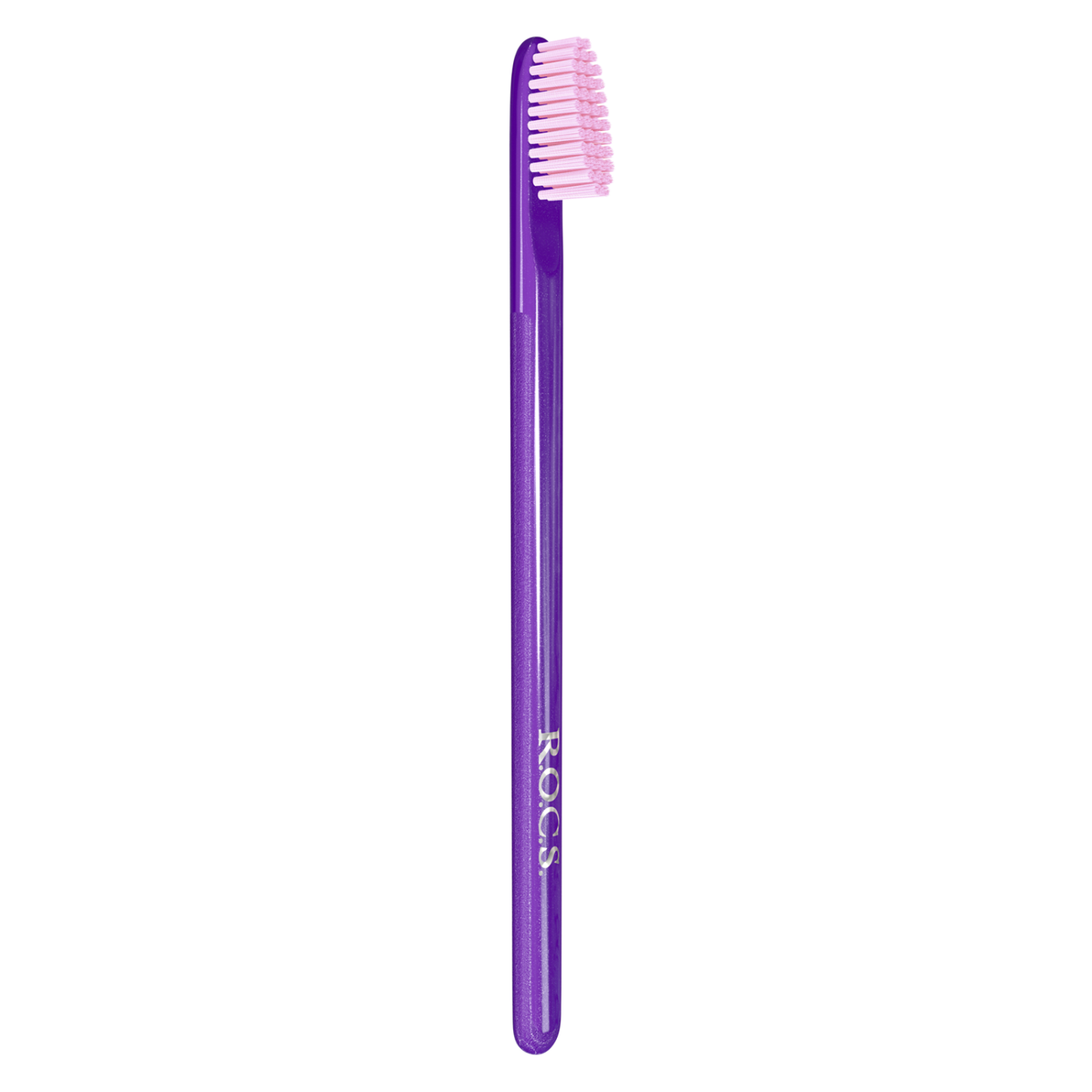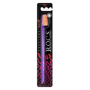 Зубная щетка R.O.C.S. PASSIONS средней жесткости — яркое и стильное решение для любой ванной комнаты! Она обеспечивает высокий комфорт при ежедневном уходе за полостью рта. Классическая одноуровневая скошенная подстрижка обеспечивает легкое проникновение к дальним зубам и качественную очистку всех поверхностей зубного ряда. Технология тройной полировки кончиков гарантирует бережный уход за деснами. Лёгкая и тонкая ручка помогает избежать излишнего давления во время чистки.