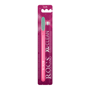 R.O.C.S. XL-Clean - зубная щетка средней жесткости с увеличенной головкой для эффективного ежедневного ухода за зубами и деснами. Щетка изготовлена с использованием текстурированной щетины с закругленными безопасными кончиками. Обеспечивают быстрое и качественное очищение, не повреждают эмаль, реставрации из пломбировочных материалов. Высокое качество очистки и легкий доступ к труднодоступным участкам полости рта, межзубным промежуткам, небной и язычной поверхностям зубов.