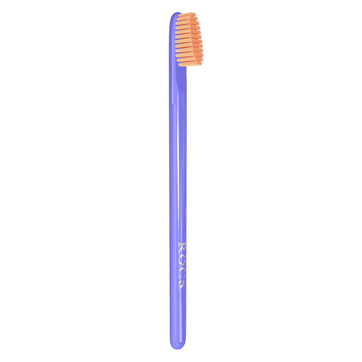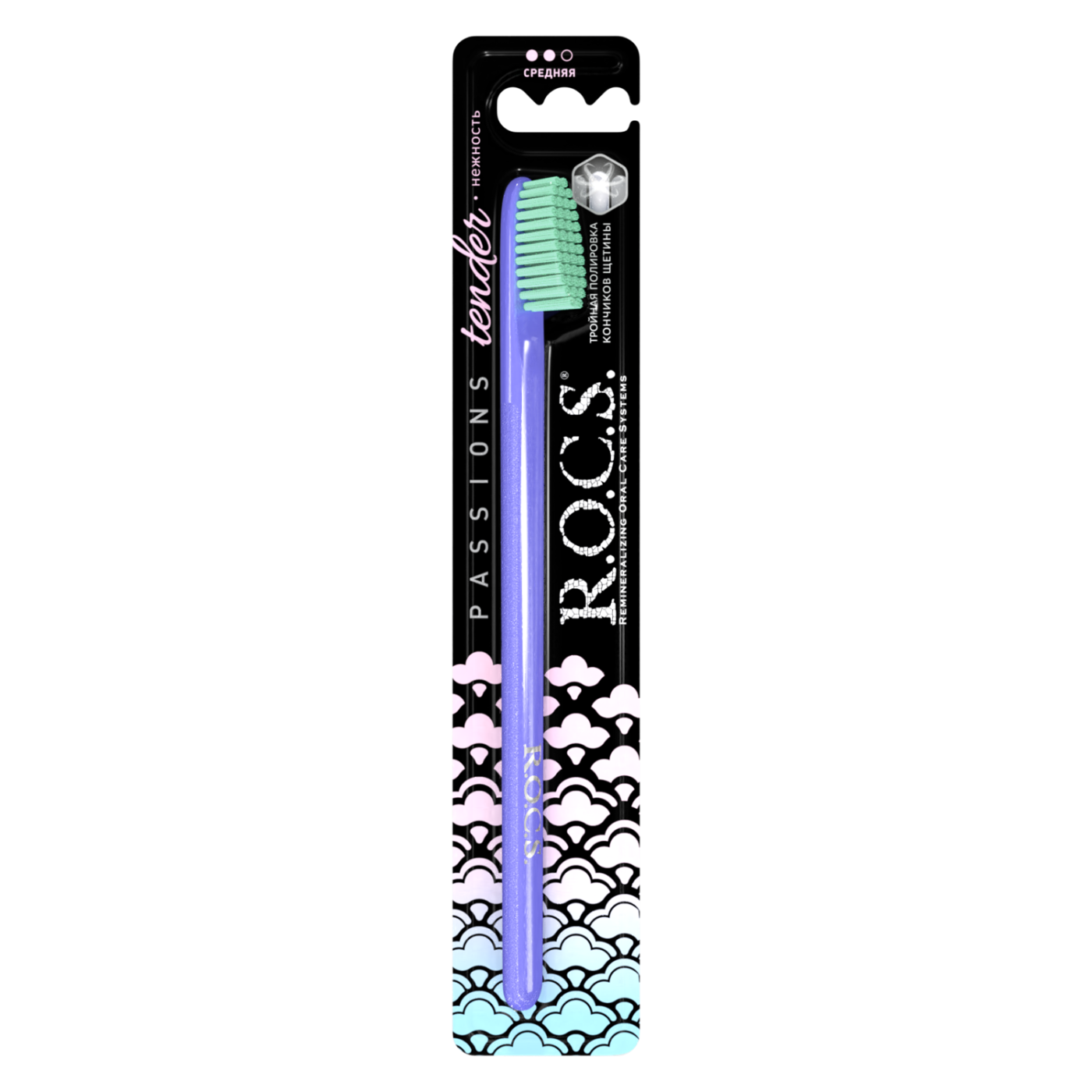 Зубная щетка R.O.C.S. PASSIONS средней жесткости — яркое и стильное решение для любой ванной комнаты! Она обеспечивает высокий комфорт при ежедневном уходе за полостью рта. Классическая одноуровневая скошенная подстрижка обеспечивает легкое проникновение к дальним зубам и качественную очистку всех поверхностей зубного ряда. Технология тройной полировки кончиков гарантирует бережный уход за деснами. Лёгкая и тонкая ручка помогает избежать излишнего давления во время чистки.