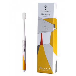 Высокотехнологичная щетина кисти для зубов Пикассо из коллекции Montcarotte ABC сделана из полиамида - он не впитывает влагу и сохраняет форму в два раза дольше полиэстера. Такая щетина поможет добиться максимально гладкой поверхности эмали и желаемой белизны. Идеально закругленные на конце волокна щетины не травмируют десна и бережно полируют поверхность эмали. Ручка щетки сделана из высокопрочного пластика, имеет форму художественной кисти, что также позволяет добиться максимально правильной техники чистки зубов. Художник показывает нам, что пространство простых форм может быть непростым и загадочным и являться бесконечностью для одного и границами реальности для иного.