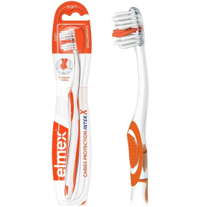Зубная щетка Elmex Защита от кариеса создана для тщательной чистки межзубных промежутков, предотвращая появление кариеса.