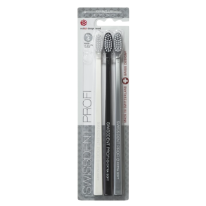 В набор входят 3 отбеливающие зубные щетки Swissdent, созданные швейцарскими учеными для точной и бережной чистки зубов.