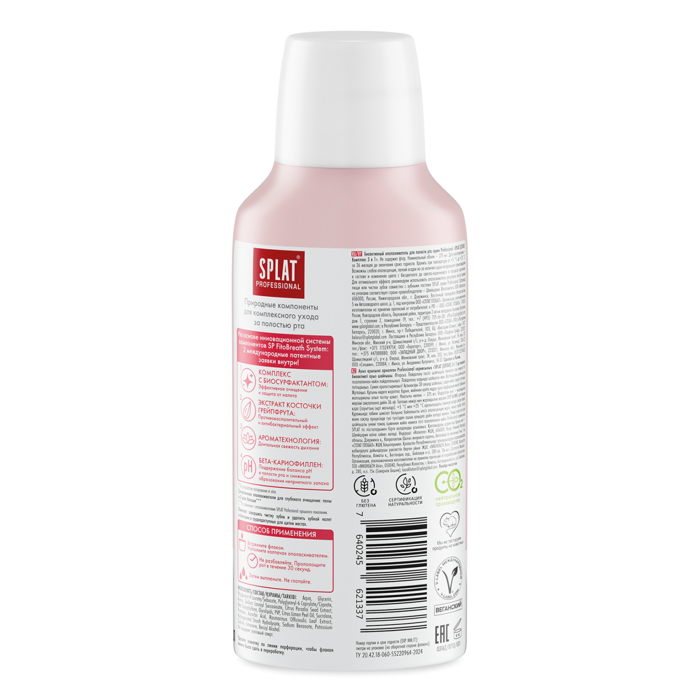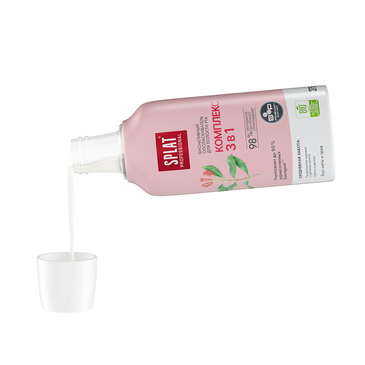 Инновационный ополаскиватель для полости рта SPLAT Professional «Комплекс 3 в 1» создан на основе системы SP. FitoBreath System, которая обеспечивает эффективное очищение полости рта от налета и остатков пищи, препятствует размножению кариесогенных бактерий, поддерживает здоровье десен и сохраняет свежесть дыхания надолго. Активные компоненты комплекса помогают удерживать баланс pH и оказывают противовоспалительное действие.