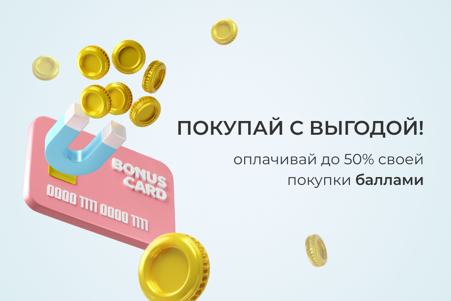 Бонусные баллы можно использовать для оплаты до 50% следующей покупки по курсу 1 балл = 1 рубль. Для этого укажите количество баллов, которое вы хотите использовать при оформлении заказа.